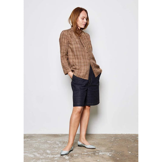 Stine Goya Gathered Midi Dress in Burgundy Checkered Wave, size Small