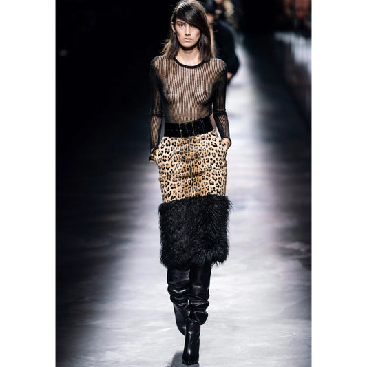Saint Laurent Shearling And Leopard-print Faux Fur Midi Skirt, size 40IT