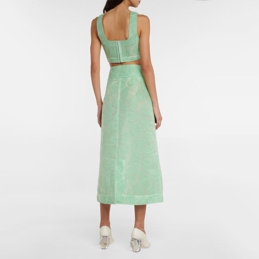 Jil Sander Paisley Mesh Jacquard Skirt in Light Green, size 36 (fits US 2/4)