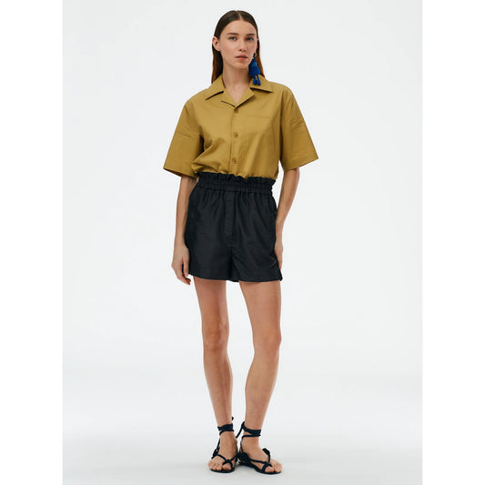 Tibi Crispy Nylon Pull-On Shorts in Black, size Large