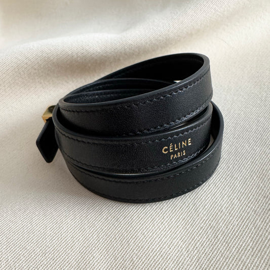 Celine Triple Wrap Leather Wrap Bracelet in Black, size Large