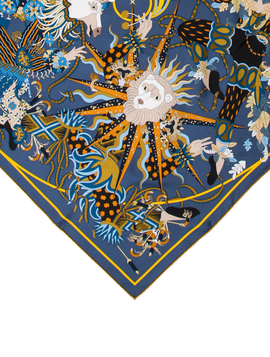 Hermes Le Sacre des Saisons Silk Scarf 90 in Blue/Camel