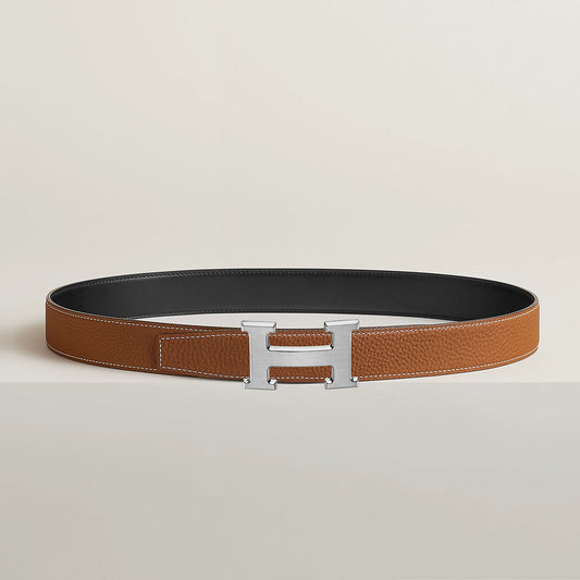 Hermes Reversible "H Belt" with Brushed Silver Buckle (size 90cm - like a Medium ish)