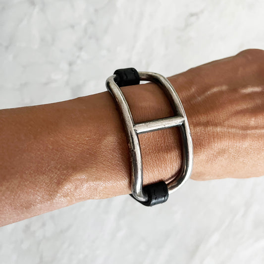 Hermes "Marine" Sterling Silver and Leather Bracelet