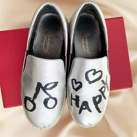 ** KIDS ** Bonpoint "Happy" Sneakers in Silver, size 31 ** AS IS **