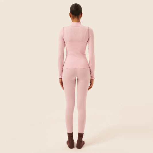 VAARA Pink Merino Base Layer Set in Pink, size Small Top, Medium Leggings