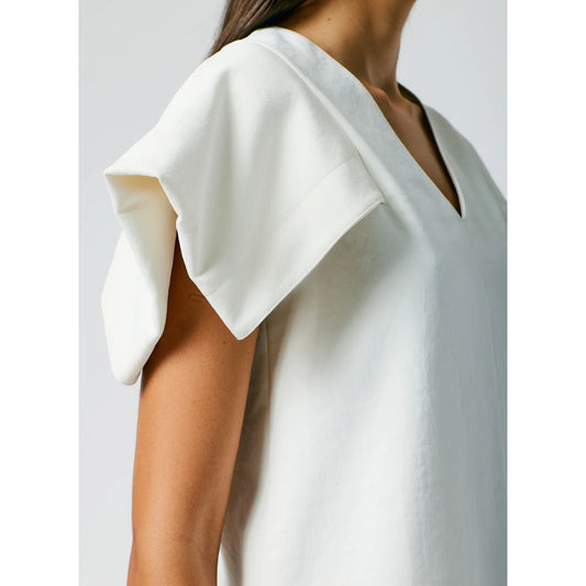 Tibi Chalky Drape V-Neck Top With Folded Sleeve in White, size 12