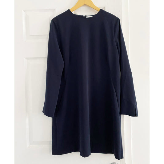 Atea Oceanie Navy Silk Crepe Long Sleeve Dress, size 42 (fits 8/10)