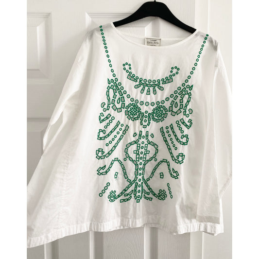 Forte_Forte White Cotton Top with Green Embroidery, Size "III" (fits like size 8/10)