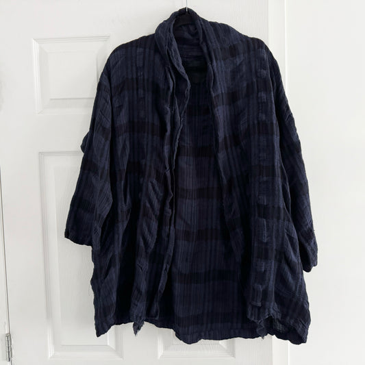 Pas de Calais Plaid Cardigan/Shirt in Navy, One Size Only