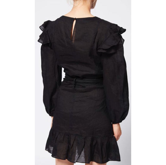Isabel Marant Etoile "Telicia" Black Linen Wrap Dress, size 38 (fits like a size 4)