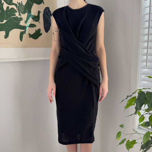 Helmut Lang Black Crepe Wrap Dress, size XS