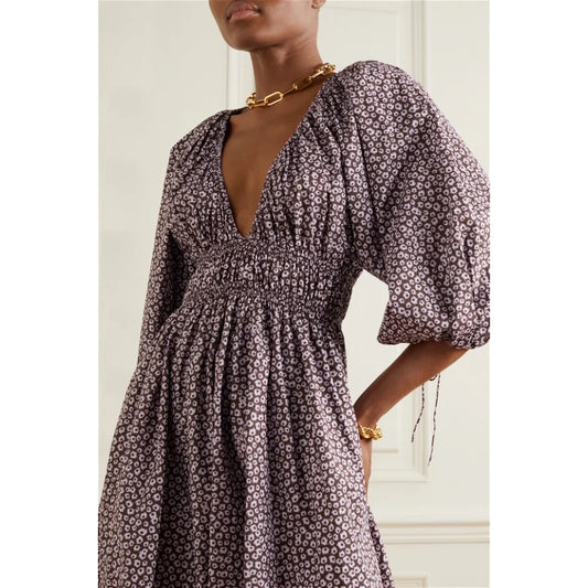 Matteau Shirred Cotton Dress, size "4" fits like L-XL