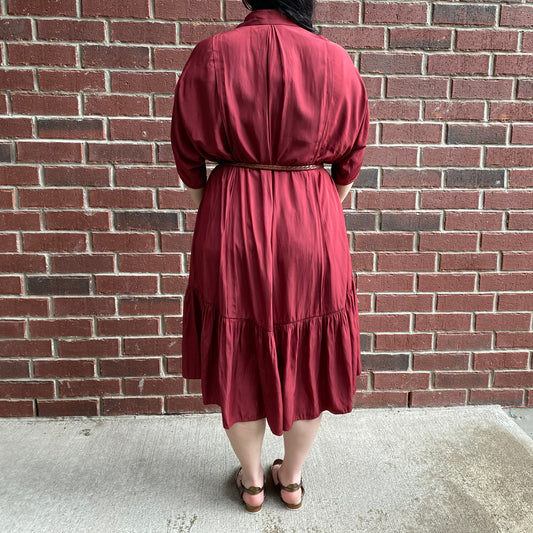 Lanvin Fluid Crepe Shirtdress in Raspberry Red, size 36 (fits everyone)