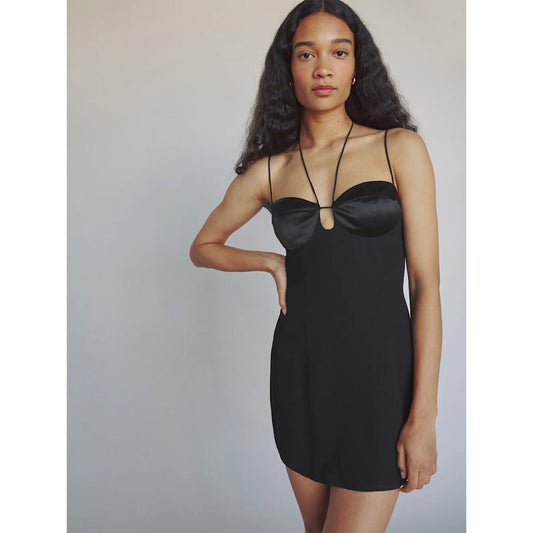 Reformation "Ocean" Mini Dress in Black, size 6 (fits size 4)
