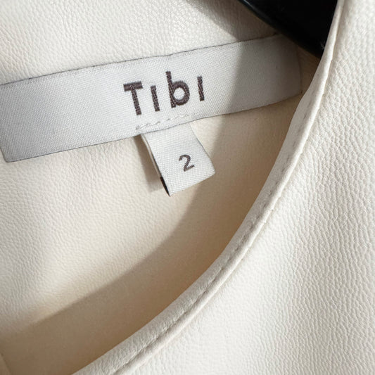 Tibi Faux-leather Structured Mini Dress in Ivory, size 2