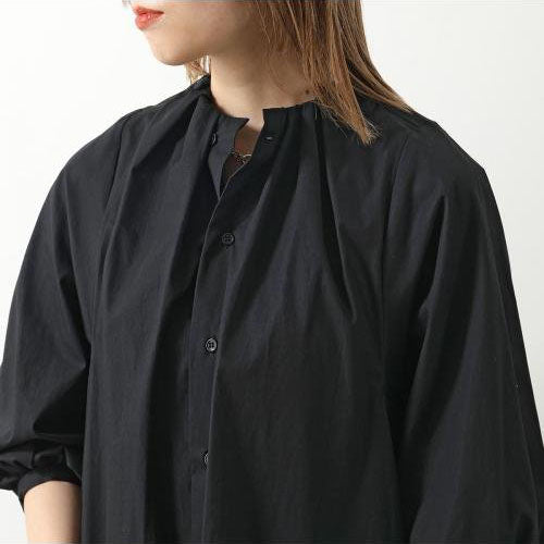 MM6 Gathered Neck Poplin Shirt Dress in Black, size 36 (fits XS/S)