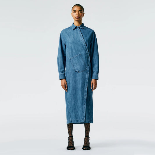 Tibi Lightweight Stone Wash Denim Shirtdress, size 14