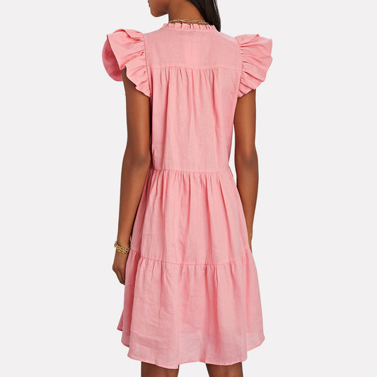 Sea New York "Shannon" Scalloped Shirt Dress in Pink, size XS (fits XS-S)