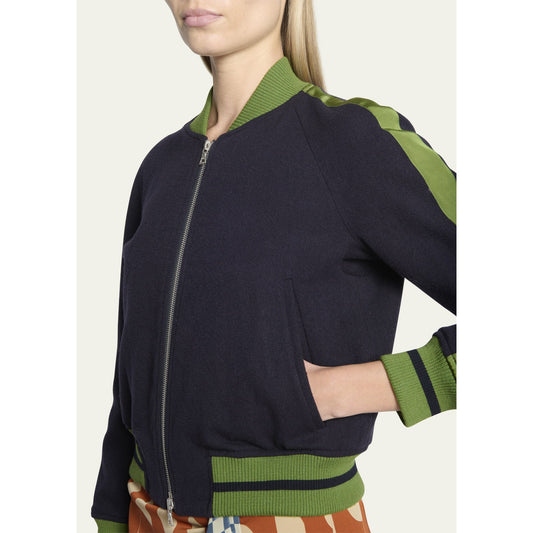 Dries Van Noten "Valory" Bomber Jacket in Navy/Green, size 42 (fits like size 8/10)