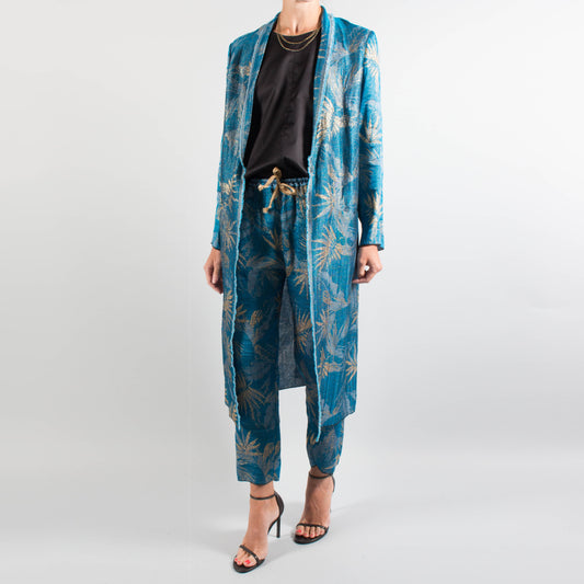 Forte.Forte Metallic Duster in Blue with Gold, size "III" (or like a size 8/10)