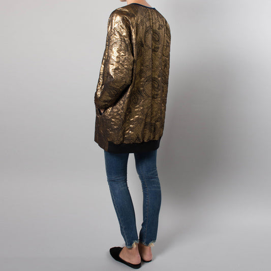 Forte_Forte Metallic Jacquard Bomber Jacket in Gold, size "0" (fits XS/S)