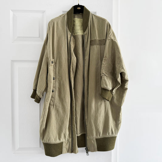 R13 Long Flight Jacket in Army Green, size XS (fits S-M)