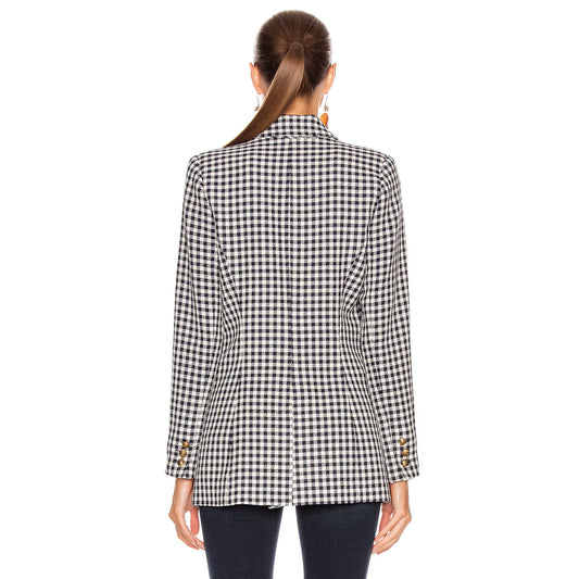 Smythe Tailored Wool Crepe Blazer in Navy Check, size 4