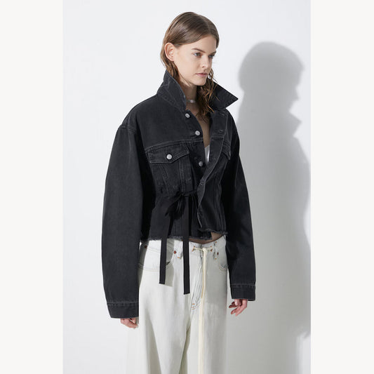 MM6 Maison Margiela Cropped Denim Jacket in Black, size 36