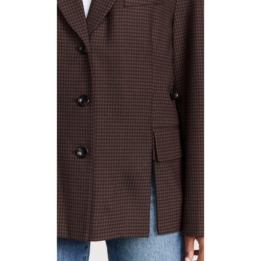 Tibi Jett Suiting Liam Blazer With Slit Zipper Detail in Brown Check, size XXS