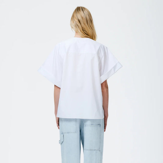 Tibi Eco Poplin Rolled Sleeve Shirt in White, size Medium