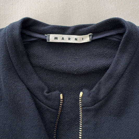 Marni Short Sleeve Zip Up in Navy, size 42 (fits size Small)