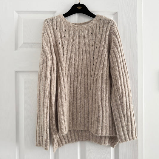 Nili Lotan Ribbed Alpaca Blend Sweater in Oatmeal, size XS