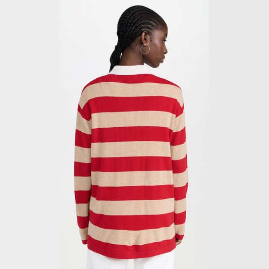 Guest in Residence Striped Rugby Cashmere Sweater in Red/Tan, size Small