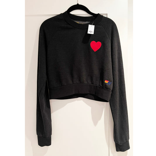 Aviator Nation Cropped Sweatshirt in Faded Black, size Medium (fits more like Small)
