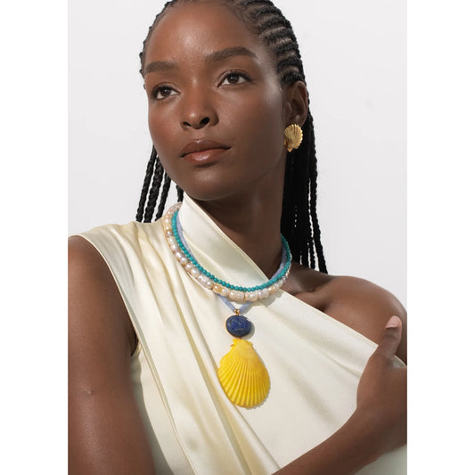 Jennifer Behr "Maricela" Seashell Earrings in Gold w Pearl