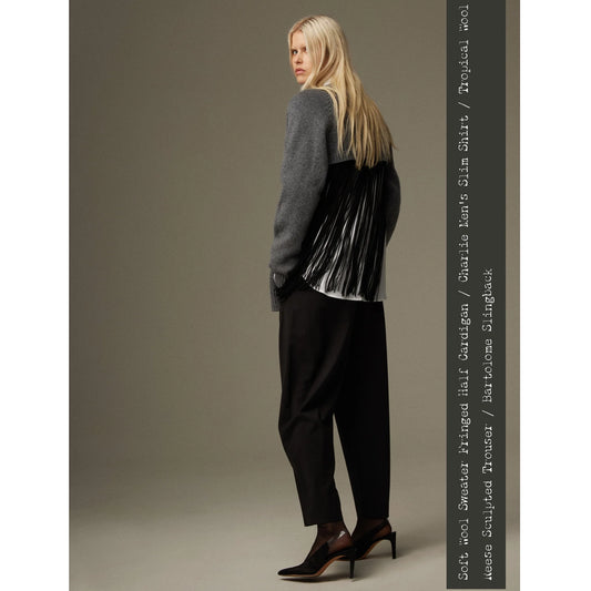 Tibi Soft Sweater Fringed Half Cardigan in Grey/Black, size S/M