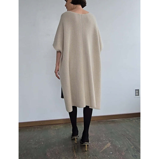 Chloe Ribbed Knit Cashmere Poncho Pink/Beige, size XS/S (fits up to XXL)