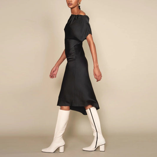Kallmeyer Satin Bias Drawstring Dress in Black, size 4