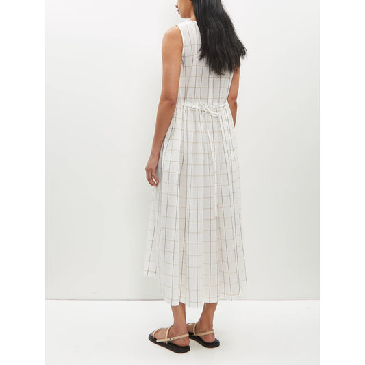 Sara Lanzi Sleeveless Windowpane Cotton Dress in White, size Medium (fits S/M)