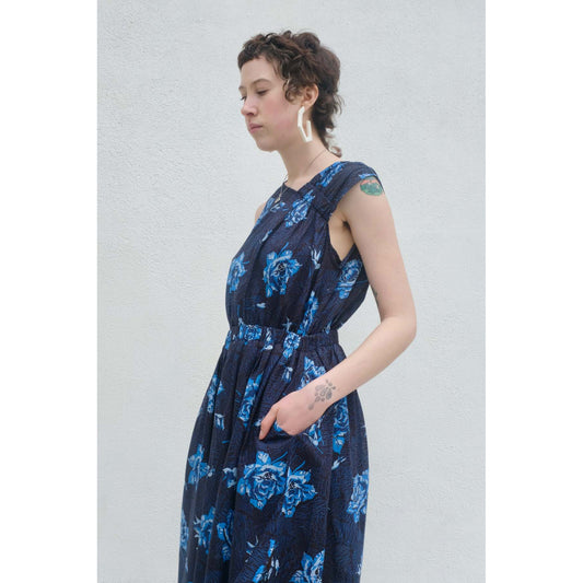 Rachel Comey "Maze" Floral Print Cotton Dress in Blue, size 8