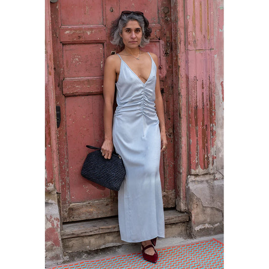 Baum Und Pferdgarten "Atalia" Gathered Satin Dress in Blue, size 38