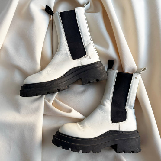 Gravity Pope Lug Sole Chelsea Boots in Off-White, size 38
