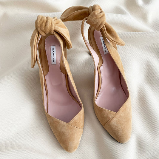 Carven Beige Suede Slingbacks with Bow Back, size 40