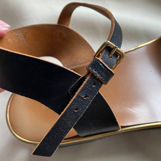 Common Projects Minimalist Black Sandals with Ankle Strap, size 40