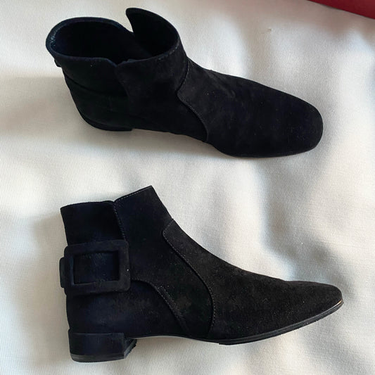 Bottines « Polly » en daim noir Roger Vivier, taille 35,5. Convient comme un 5.5