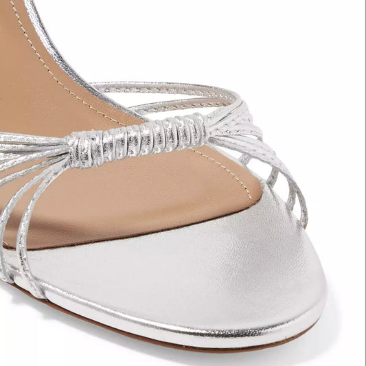 AQUAZZURA "Mescal" 50 Metallic Leather Sandals, size 38.5