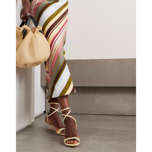 Stuart Weitzman "Nudist Wrap 50" in Lemon Chiffon, size 7US/37.5