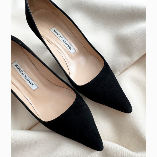 Manolo Blahnik 70mm BB Pumps in Black Suede, size 37.5
