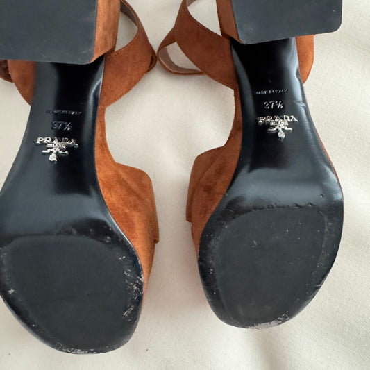 Prada Suede Platform Sandals in Brown, size 37.5
